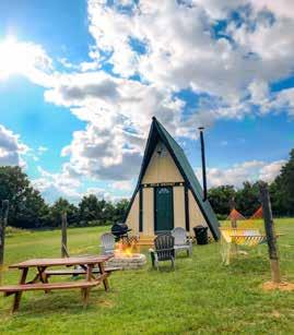 Rustic charm meets modern convenience at Starstruck Farm in Lebanon, just over the 109 Bridge from Gallatin. Nestled in a serene setting, these A-Frame Glampers offer the perfect blend of comfort and nature for up to six guests. Outside, gather around the fire pit for evenings under the stars. All outdoor spaces have comfortable chairs, a picnic table and grill, ideal for outdoor dining or simply taking in the quiet of nature. Each A-Frame has a mini-fridge, microwave, coffee maker, wood-burning stove to keep warm during cooler months and a ceiling fan for pleasant temperatures year-round. Breakfast is provided to guests each morning.