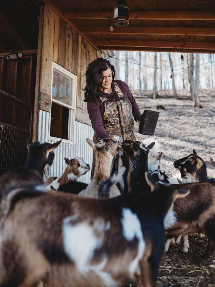 Her goats came first as a practical solution. After experimenting with a mini LaMancha, Ashley landed on Nigerian Dwarf dairy goats, ideal for the farm’s steep hillside terrain and manageable enough to handle solo in emergencies. Their high butterfat