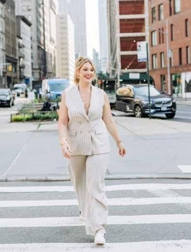 When it comes to return on investment, Kostis looks at costper-wear. Pieces that can be styled multiple ways always win. Along with a tailored blazer, she recommends medium-wash straight-leg denim, a thick white crew neck tee, a little black dress, a quality leather belt, and a chunky gold statement necklace. If an item can be styled at least five different ways, it’s worth considering.