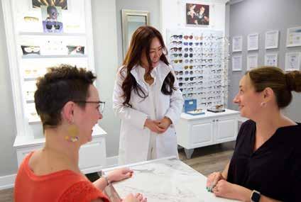 One of the hallmarks of the new offices, Dr. Cha says, is its frame shop, where patients can pick out their new glasses immediately after their eye exam and get expert advice and fitting from Veilleux.