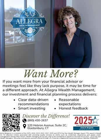 We also spoke with Jenny Bergeron, the founding member of Allegra Wealth Management of Glastonbury. Jenny prides herself on helping her clients conquer their fears of financial planning and investing.
