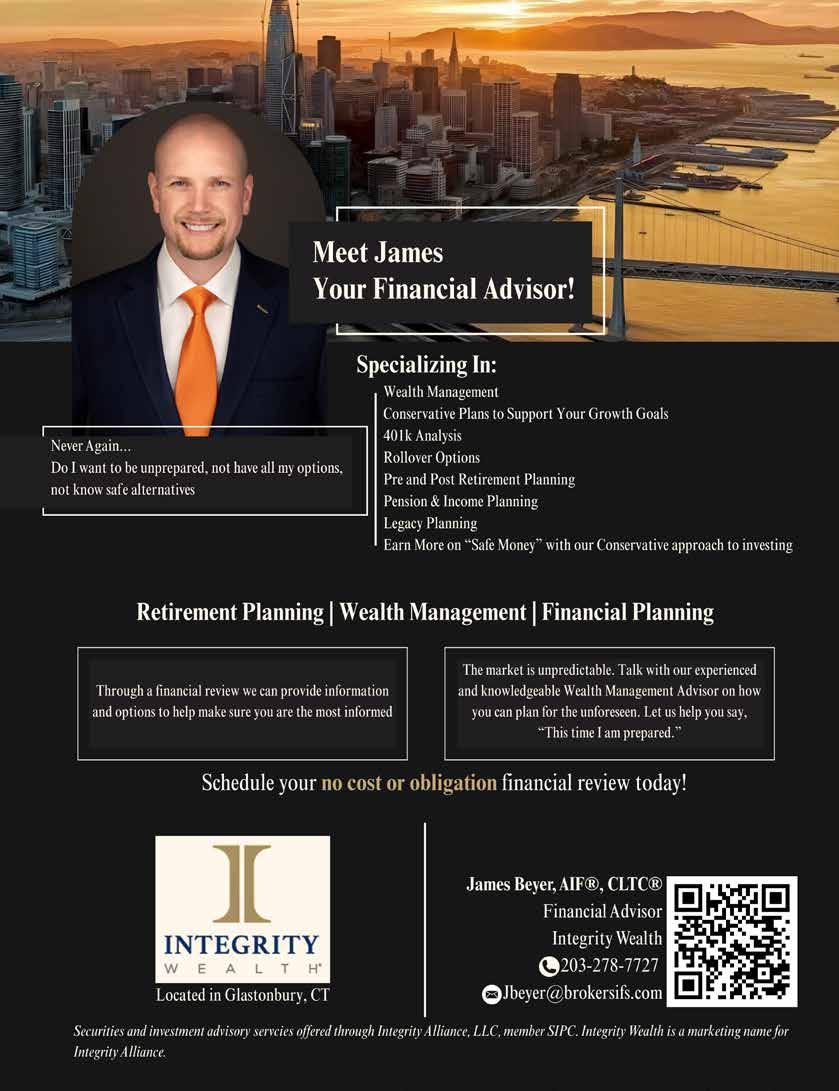 In this month's issue, we spoke to several local investment experts, including Financial Advisor James Beyer, of Integrity Wealth Management here in Glastonbury. An independent fiduciary advisor, James's area of expertise is helping investors navigate the final three to five years just before retirement.