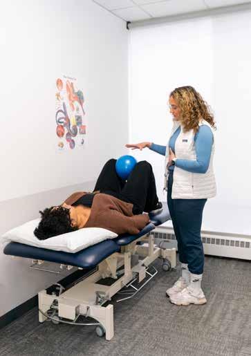 Treatment often includes pelvic floor contractions combined with diaphragmatic breathing, along with functional movements such as squatting while engaging the pelvic muscles. Because the pelvic floor works closely with surrounding muscle groups, Lauren says, therapists also focus on strengthening the glutes, hip abductors, quadriceps, hamstrings and core.