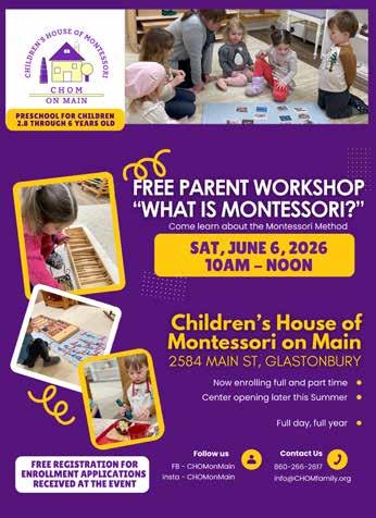 Children’s House of Montessori on Main has signed a lease with St. James Episcopal Church to use their former Sunday School wing to house Glastonbury’s new Montessori Preschool. The school will open in late Summer. The first event will be a free parent workshop titled “What is Montessori?" It will be held in the Church Atrium at 2584 Main St., on June 6, from 10 a.m. to noon. chomoncamp.org