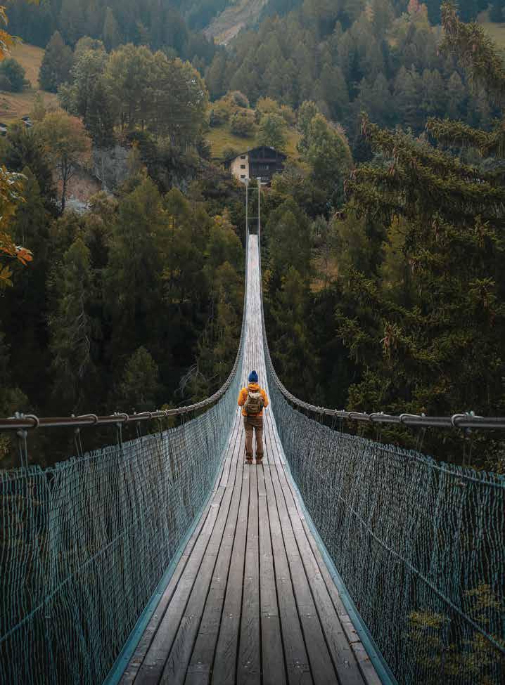 Walk over Goms Bridge, a nearly 1,000-foot-long suspension bridge that connects two hiking areas over the Rhône River. For a final look at the majestic glacier, take the cable car to Viewpoint Eggishorn. At nearly 10,000 feet above sea level, it offers panoramic views of the Matterhorn, Mont Blanc, Jungfraujoch, or the “Top of Europe,” and the most comprehensive view of the Aletsch Glacier.