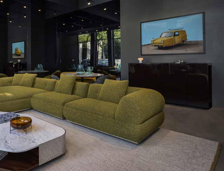 “Minotti fabric isn’t an afterthought,” Graunk explains. “It’s designed to elevate the silhouette and highlight the architecture of the furniture.”