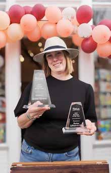 1: Second Anniversary Celebration 2: Palisade and Fruita Chamber Ambassadors gather for ribbon cutting. 3: Kristen shows Business and Citizen of the Year Awards from Palisade Chamber 4: Welcome to Harlow Lifestyle and Gift 5: After cutting the ribbon with Palisade and Fruita Chambers