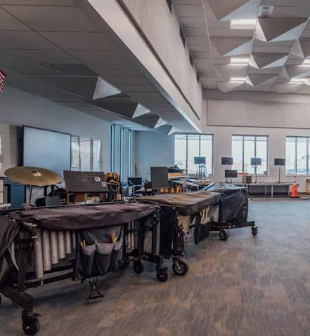 mind, as evidenced by the sound panels, sound diffusers, and offset walls. Our new choir room includes two practice rooms, music library storage, uniform storage, and - perhaps best of all - our own water fountain. One can confidently say that in this facility, the GJHS choirs will continue to prepare quality vocal music for generations to come.