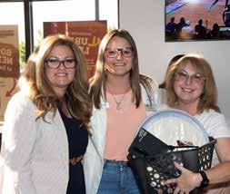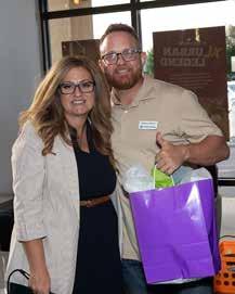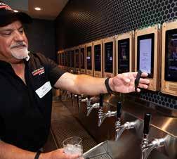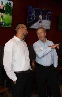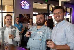 1: Jessica Burford having a laugh with another chamber guest. 2: Three cheerful attendees enjoying a “cold-one” during Grand Valley Biz mix. 3: Frank Lindemann at GV Biz Mix. (Five local Chambers combine three times a year.) 4: Candace Carnahan , Brittany Dixon with a door prize winner. 5: Presenting another winner! 6: Smokin’ Oak Pizza Proprietor/event-host Bob, demonstrates the pour-tracking wrist band at the tap wall. 7: Candace presents Jeremy Sewell with the door prize he won. Photography by John Redding