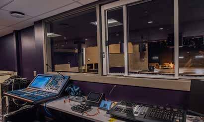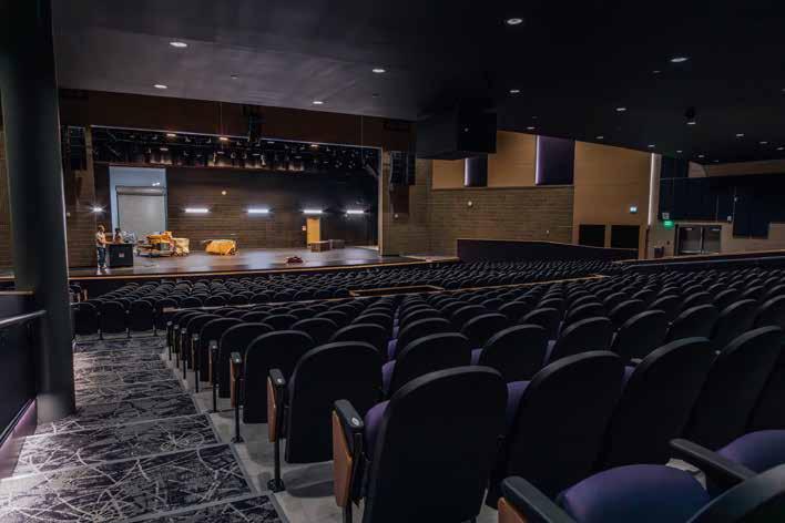 filling our new balcony. The purple of the Theatre represents the Academy that Theatre Arts is a part of, as well as brings a calm atmosphere just before a show is about to begin. It also serves to help absorb light better, allowing the actors and audience to immerse themselves in to the story that is unfolding on the stage. Our stunning new lobby allows for a beautiful view while audience members purchase tickets or snacks from our ticket booth.