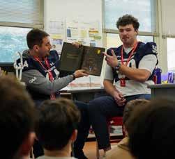 1: Lyons & Associates attended the Monmouth Bar Association Annual Family Law Dinner and Awards. 2: Theresa Lyons, managing partner of Lyons & Associates, was honored by EO New Jersey for Inc. 5000 recognition. 3: Amelchenko Gallery in Red Bank debuted with a ribbon cutting and finissage benefiting Monmouth SPCA. 4—5: Hawks advance to CAA Semifinals as fans gathered at Marriott Georgetown to cheer the team on. 6—7: Monmouth Hawks football team visited Betty McElmon Elementary, creating community through reading and inspiring young students.