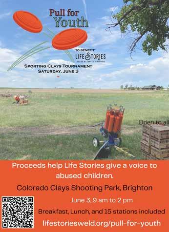 Similar to a golf tournament, participants of this clay shooting tournament will receive breakfast, lunch and shooting 15 stations (ammo not included). The event benefits Life Stories, giving a voice to abused children in Weld County. Register at runsignup. com/TicketEvent/PullForYouth22