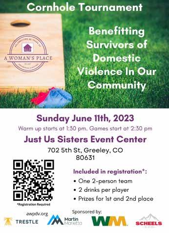 Join A Woman's Place on June 11th for their annual Cornhole Tournament Fundraiser benefiting survivors of domestic violence in the community. The event starts at 1 pm and will be at the Just Us Sisters Event Center in Greeley.