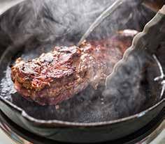 If you have a fat cap on your cut of steaks, put that on the cast iron first to let it get nice and charred. Then flip down the first side of your steaks and don’t move them so they can get a nice crust, for a thick cut of steak, about 3 minutes for rare - medium rare and about 4 -5 minutes for medium.