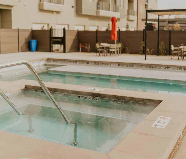 Relax in the resort-style saltwater pool and courtyard with umbrellas and cabanas, or unwind in the year-round spa. It’s like having a luxury vacation right outside your door.