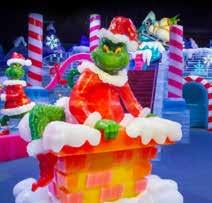 Journeying through the attraction, guests will see stunning ice carvings of familiar characters and scenes, including the grumpy Grinch’s lair, Who-ville, the Grinch carving roast beast, and 12-foot ice statues of the Grinch.