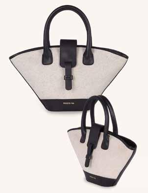 Featuring Mini Lumière Rafia & Black, $370. This quality bag is made of cowhide leather, linen and raffia. Its elegant silhouette and sophistication add a point of interest to any ensemble. Pair with both casual and elevated warm weather looks.