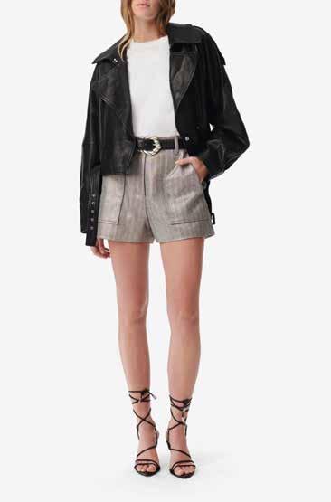 The allure of bare legs paired with these shorts in the early season, or the depth of layering them with tights as the weather cools. Styling: A crisp white button-down and a trench or leather jacket offer classic contrasts, while a suede jacket injects a playful, textural dimension. The MARCELINE shorts are a canvas for endless styling possibilities, promising to be a cornerstone of any fashion-forward wardrobe.