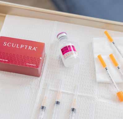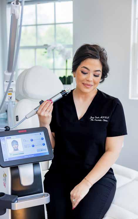 JC: The Cosmetic Clinic offers a vast variety of treatments like wrinkle-relaxing Botox or Dermal Filler, but currently the latest trending treatments (for both men and women) are definitely Biostimulators like Sculptra and Collagen Induction Therapy using Lutronic Genius® RF Microneeding. The Genius® facilitates the regeneration of collagen and elastin to improve texture, tone, laxity and scars across the body. Similarly, Sculptra, a biostimulator, is the first and original FDA-approved injectable that targets fine lines, wrinkles, sagging, and other signs of aging due to collagen loss, gradually helping restore skin structure and volume. Another popular treatment is our Ultra Resurfacing Laser - a yearround best-seller to provide overall skin-glow and decrease hyperpigmentation, dark spots, pore size, and stimulate collagen. We also seem to be trending with Hair Restoration treatments with our advanced Platelet Rich Plasma (PRP) and Keralase Hair Restoration Laser. Men and women alike are flocking in for thicker and fuller hair!