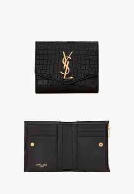 Featuring the Uptown Compact Wallet in Noir Crocodile-Embossed Shiny Leather, $595. This wallet represents a thoughtful departure from the minimalist trend. While not petite, its generous dimensions are far from cumbersome. Multiple compartments, a billfold, and ample card slots ensure both practicality and organization. It’s a wallet that commands attention without being overbearing, a versatile accessory suited for most handbags but perhaps too substantial for the confines of a micro bag or clutch. The elegant hardware and embossed detailing lend a touch of luxury, creating a timeless piece that effortlessly transitions from day to night.