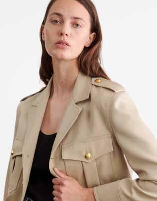 Featuring the Lise Jacket in Roosevelt Khaki, $1,425. This boxy cropped lapel jacket is more than just a garment; it’s a declaration of style. Crafted from luxurious wool, this piece is poised to become the focal point of any autumn wardrobe. Its silhouette offers a modern twist on classic tailoring, while the cropped length strikes the perfect balance between edgy and elegant.