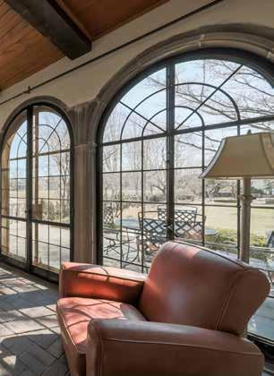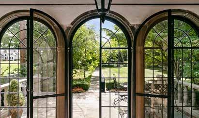 "The home also has this beautiful garden room that I'm sure is original to the house," says Kay. "It's off the dining room and is a beautiful place to sit and look at the gardens. The French doors open up to a small terrace where you see three striking large stone arches on the rear elevation.