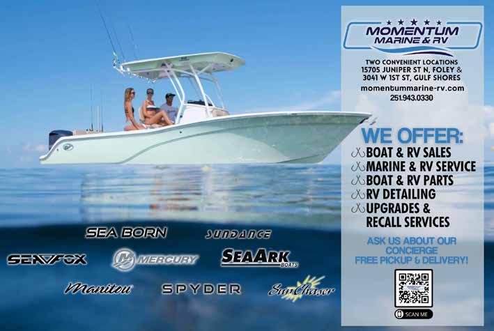 Empowering Legacies, Safeguarding Futures King & King, Attorneys at Law 805 N. McKenzie Street, Suite A, Foley, AL 36535 251.501.6100 | www.kingplc.com | B kingandkingplc No representation is made that the quality of the legal services to be performed is greater than the quality of legal services performed by other lawyers. Your Trusted Estate Planning and Business Law Partners. PRESSURE WASHINGSOFT WASHING Residential/Commercial ROOFING | CONCRETE | FENCING WINDOWS | PARKING LOT STRIPING 251.424.7061 | DeluxeExteriorCleanerz.com New Suzuki Marine Authorized Dealer in Orange Beach! advancedmarineandpower.com (251) 981-6431 25286 Canal Road Orange Beach, AL 36561 Contact Advanced Marine & Power Systems for all of your Suzuki Marine service needs. 40