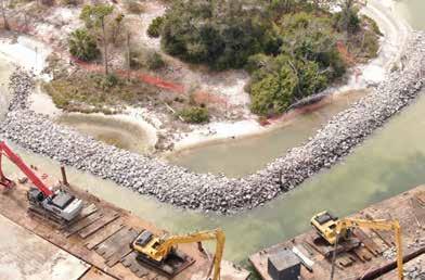 While the design team made every effort to minimize impacts to seagrass beds, a few patches of seagrass existed within the sediment placement areas. In partnership with the U.S. Army Corps of Engineers and NOAA’s National Marine Fisheries Service, the partners prepared documents outlining the plan to relocate seagrasses within impact areas and monitoring transplanted sods (plants, roots, and sediment) throughout the life of the project. These seagrass beds are extremely valuable as they have been steadily expanding CONTINUED >