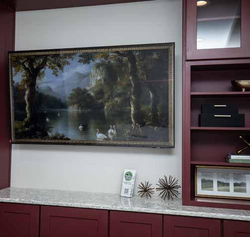 The showroom itself is immersive and built to inspire. “You see vignettes of different parts of homes,” Bennett said. “People come and start to look around, and it gives them ideas.” From kitchens and mudrooms to wine rooms, offices, outdoor living spaces, and garage organization, the space is designed to feel actionable. “We’re happy to have that because we’ve shown a lot of unique things you can do in a home.”