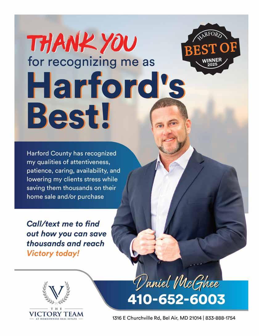 In an ever-shifting housing market, he brings patience, creativity, and clear communication, especially for first-time buyers navigating unfamiliar territory. He also helps clients think beyond price and square footage, guiding them toward homes that support balanced lifestyles without financial strain. Looking ahead, McGhee’s vision is growth with purpose. He has his sights set on expanding his team with like-minded agents who share a people-first philosophy and broadening the impact he can make across Harford County and beyond.