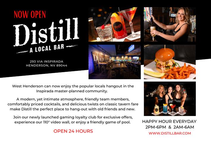 Local hangout bar, Distill recently welcomed its newest valley location in the heart of the Inpirada master-planned community. The tavern celebrated the location’s opening with an event featuring live music, exclusive prizes, specialty cocktails, hand-crafted food specials, and free gifts to the first 100 guests. Distill Inspirada promises an immersive experience where guests can enjoy old friends (or meet new ones) in a modern yet intimate atmosphere served by friendly and familiar faces 24/7.