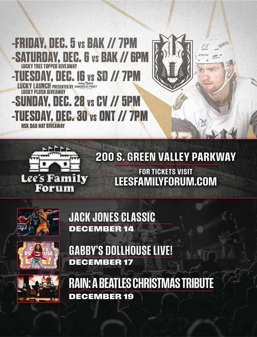 Get ready for the annual Lucky Launch Knight at the Henderson Silver Knights vs San Diego Gulls game. Bring a new stuffed animal to the game and be ready to launch it onto the ice when the Silver Knights score their first goal. All toys will be gathered and donated to local charities helping kids in need. leesfamilyforum.com
