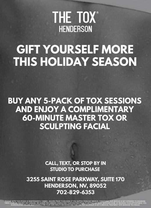 Celebrate the holiday season by supporting the annual Library Tree Lane Gala fundraiser. Friends of Henderson Libraries will fill the Paseo Verde Library with beautifully decorated trees, food and wine, gift baskets, and the company of friends. For tickets and sponsorships, visit hdplfriends. org/librarytreelane.html.