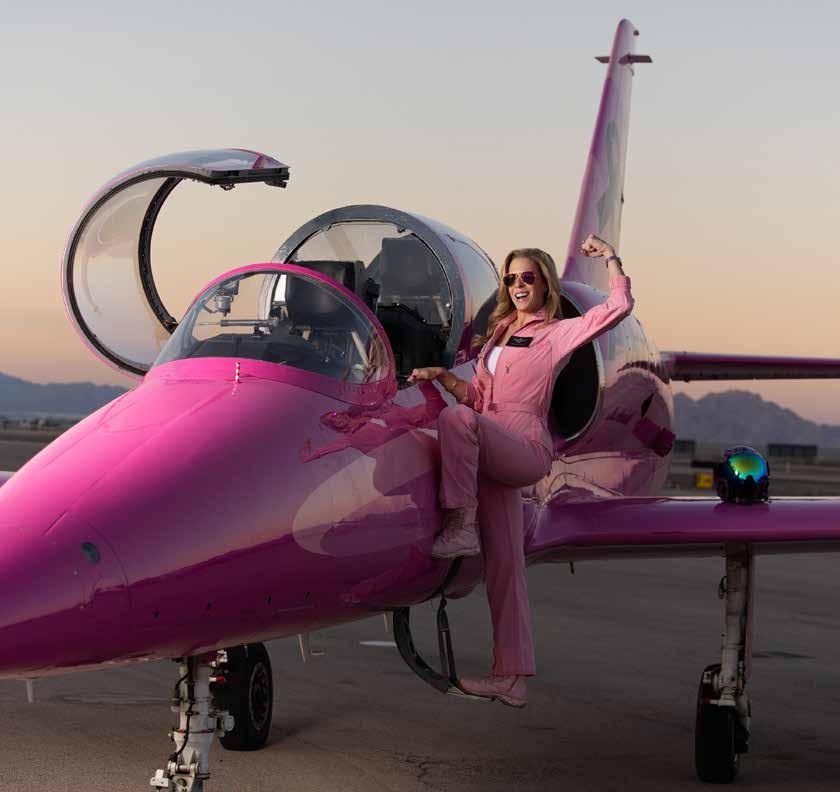 That assignment rewrote her script. Years later, Stephanie is no longer telling stories from behind a news desk; she is writing them across the desert sky in a streak of pink. As president and pilot of The Pink Jet, a 501(c)3 nonprofit, she leads a female team flying a bold pink L-39 Albatros to promote breast cancer awareness, early detection, and survivor support at airshows and events across North America. From her home base in Las Vegas, she has turned aviation into both a calling and a commitment to her adopted city.