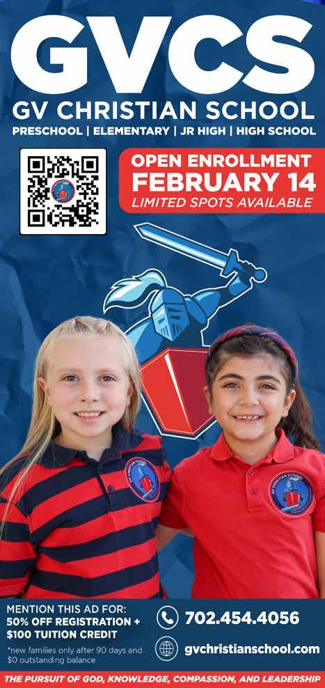 Perched atop a hill at Sunset and Valle Verde, Green Valley Christian School has been a cornerstone of the Henderson community for more than four decades. What began as a small preschool in 1991 has flourished into a vibrant infantthrough-12th-grade campus serving more than 850 students. For Executive Pastor Rebekah “Bekah” Withey, who has been part of the school for 25 years, the true magic of GV Christian School lies in its sense of belonging, a quality she says families feel the moment they step onto campus.