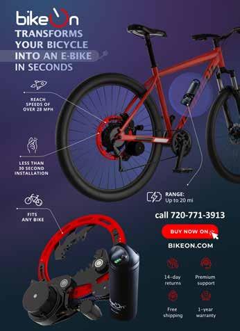 BikeOn, a Henderson-based tech startup founded by husbandand-wife duo Aram Novikov and Shushanik Khachaturian, is revolutionizing the way elderly and injured individuals stay active. With its innovative device that transforms any bicycle to electric assist in seconds with no tools or bicycle modifications, BikeOn enables users to enjoy cycling with ease, regardless of age or physical condition. This breakthrough product empowers individuals to maintain an active lifestyle, promoting both physical and mental well-being. bikeon.com