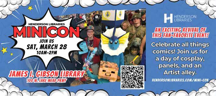 Students and families across the City of Henderson can “Book an Adventure!” by exploring new worlds with Henderson Libraries during Nevada Reading Week. From classroom storytime to afterschool activities, children can enjoy books, crafts, and hands-on projects designed to spark curiosity and a love of reading. The library’s outreach team, traveling in Leo the Henderson Libraries truck, will bring stories directly to the community. For more information, email OutreachTeam@ hendersonlibraries.com. #HeyItsLeo