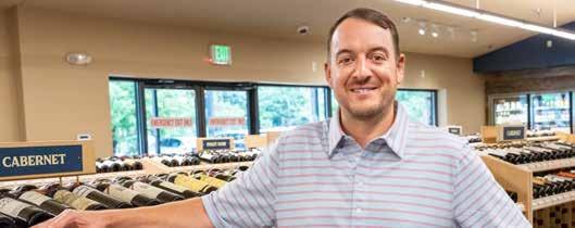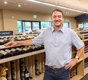 3rd generation owner Adam Sinks stands before some of his store's high end wine offerings.