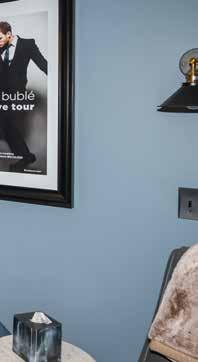 The cool modern vibe of Michael Bublé surrounds guests in this beautiful bedroom.