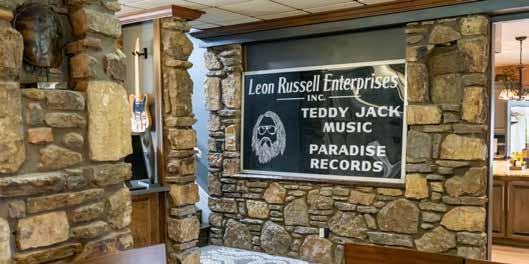 The main entertainment hall boasts an original sign commemorating the creation of Leon Russell's recording studio and home.