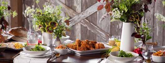 Spending time outdoors and enjoying friends and family over good food and drinks is a great way to enjoy the season’s beautiful weather. From the fresh flower arrangements, produce, and herbs, this earthy spread is brimming with character and flavor. The earthy ceramic and clay vases give the perfect vessel to fill with organic cut herbs and handpicked wildflowers. We arranged a beautiful medley of Queen Anne’s lace, mint, sage, rosemary, lavender, lamb’s ear, nigella, buddleia, oregano, dill, feverfew, and geranium to name just a few of these beautiful blooms. We love a good home-cooked menu mixed with a signature drink, so we paired our meal with a delicious craft cocktail. Buttermilk brined fried chicken was a must for this outdoor party. A delicious peach bread pudding with salted vanilla caramel cream rounded out our meal for the perfect sweet treat. We wanted to share a few of our favorite recipes for you to try at home. Enjoy!