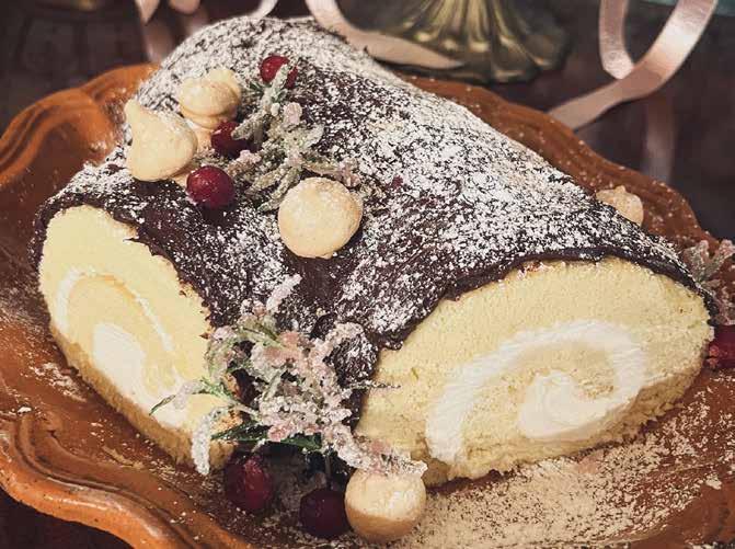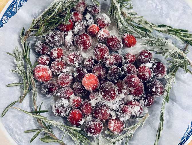 13. Decorate with meringue mushrooms, sugared cranberries and rosemary, and a dusting of confectioners’ sugar just before serving.