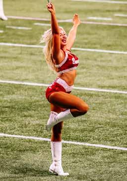 3. Tell us about your beauty routine. My beauty routine is VERY different on a normal day vs Gameday! Gameday makeup is performance makeup which means you put a lot more on so that someone far away can see. We wear red lipstick to match our crimson sequins and heavy foundation so that sweat won’t melt it all off. My normal makeup routine is very low key, and during football season I do not wear a lot of makeup during the week so that my face will be prepared for the weekend.