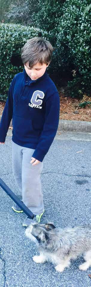 We followed our future pet to the neighborhood park, carrying a purse strap that was left for a leash in the tub. Once we secured the dog, Ryan got down on all fours, looked straight into the dog’s eyes and said, “Keep him,” matter-offactly. Ryan was far too anxious to get close to a dog at the time and really disliked getting close to animals’ faces. He also had very limited verbal abilities. The interaction and his assessment were a small miracle. We changed his name from Buddy to Buster. Brady (and the whole family) finally got a loving pet