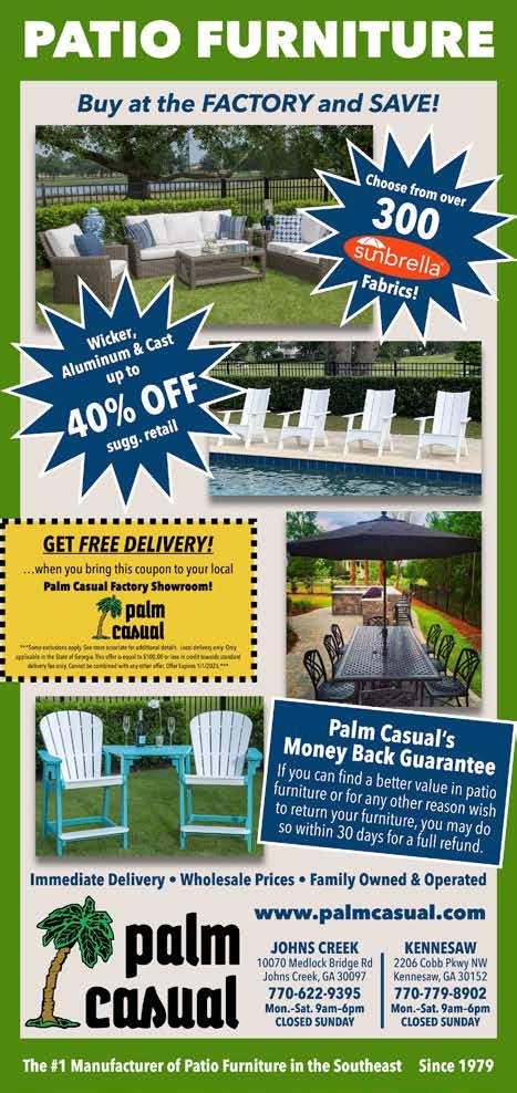 770-508-9979 www.scenicsouthlandscaping.com WE ARE YOUR ALL-INCLUSIVE OUTDOOR SOLUTION Full Service Outdoor Specialist DESIGN | CARPENTRY | MASONRY FREE PATIO GIFT $500+ VALUE WITH ANY 50K OUTDOOR LIVING SPACE RENOVATION!