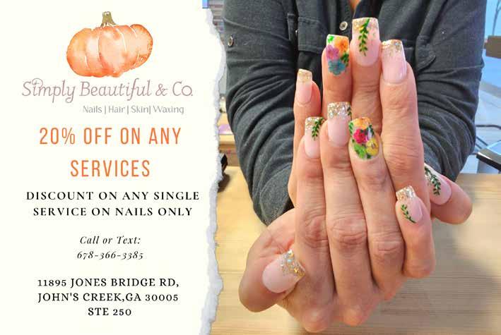 DENTAL AESTHETICS & RESTORATIVES SINCE 2001 208 Pirkle Ferry Rd Suite A Cumming, GA 30040 CUMMING: 770-781-0888 JOHNS CREEK: 678-474-4917 smilegeorgia com info@smilegeorgia com F A M I L Y N O R T H A T L A N T A D E N T I S T R Y 5805 State Bridge Rd Suite L Duluth, GA 30097 11 | CITYLIFESTYLE.COM/JOHNSCREEK MARCH 2024