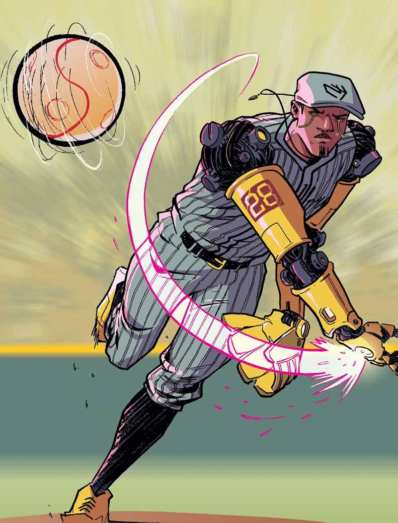 futuristic time when professional baseball is dominated by players with robotic augmentations.