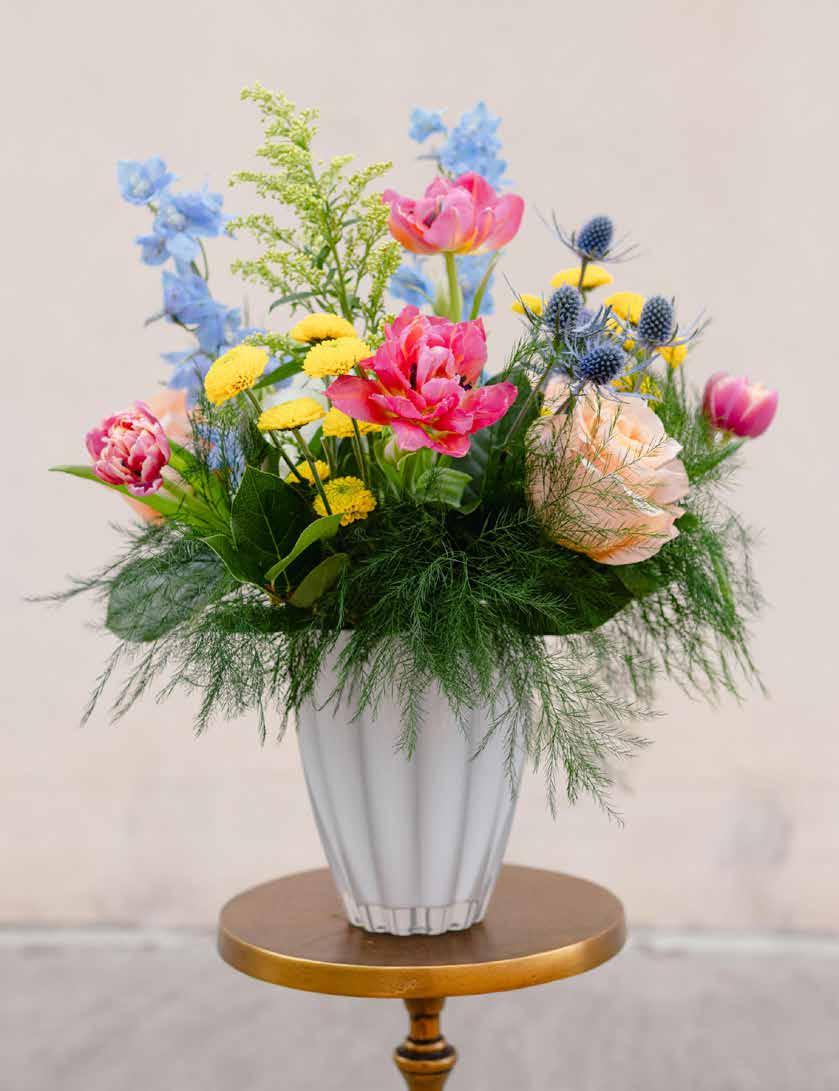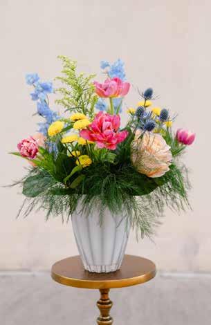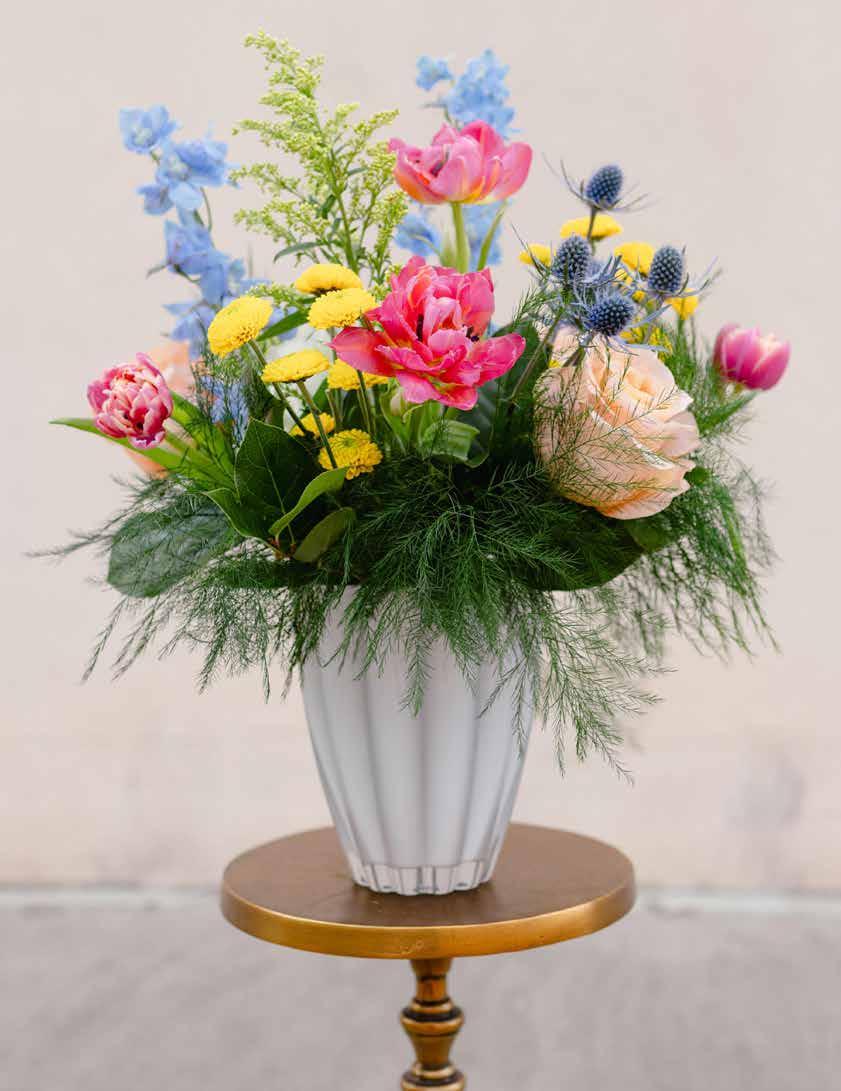 Description: A lush, garden-style arrangement featuring soft pinks, cheerful yellows and airy blue accents. Designed to feel fresh, natural and full of life, just like Mom. $95