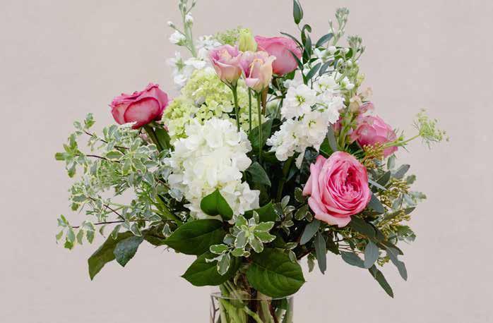 Description: A soft, naturally styled arrangement featuring blush pink roses, creamy whites and fresh green textures, designed to feel classic, balanced and beautifully suited for Mom. $190