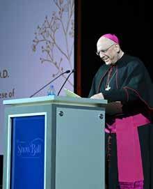 1-7: Catholic Charities Foundation of Northeast Kansas celebrated the 50th Annual Snow Ball on January 20, 2024. Over 2,000 guests attended the historic occasion which raised an incredible $5.2 million for Catholic Charities Foundation of Northeast Kansas. All proceeds will benefit Catholic Charities of Northeast Kansas’ 30+ ministries that provide help, hope and hospitality to neighbors of all faiths in need. 1: Drew and Lauren Solidum, Catholic Charities of Northeast Kansas President and CEO 2: Ken and Marilyn Hager 3: Jim and Mary Buche, Table Committee Co-Chairs 4: Mary Caffrey, Kim White, Donna Teahan and Lynn Reardon 5: Peter and Veronica Mallouk, 50th Annual Snow Ball Presidents; Kathy and Jack Newman, 50th Annual Snow Ball Honorary Presidents 6: Ken Williams and Fran and Neil Douthat 7: Archbishop Joseph F. Naumann, D.D, leads an invocation to kick off the evening’s festivities.